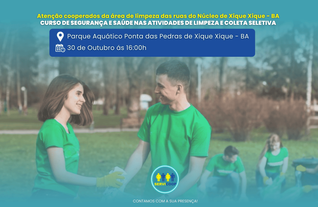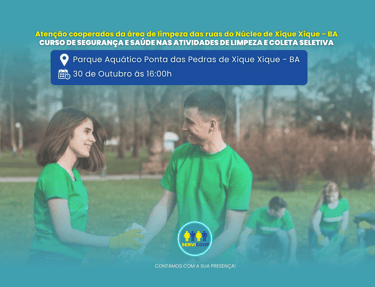 Estamos comprometidos com a saúde e segurança dos nossos profissionais de limpeza! Por isso, convidamos todos os cooperados da área de limpeza das ruas do Núcleo de Xique Xique - BA. Vamos abordar práticas essenciais para realizar o trabalho com mais segurança e bem-estar, promovendo um ambiente de trabalho mais seguro para todos. 💪